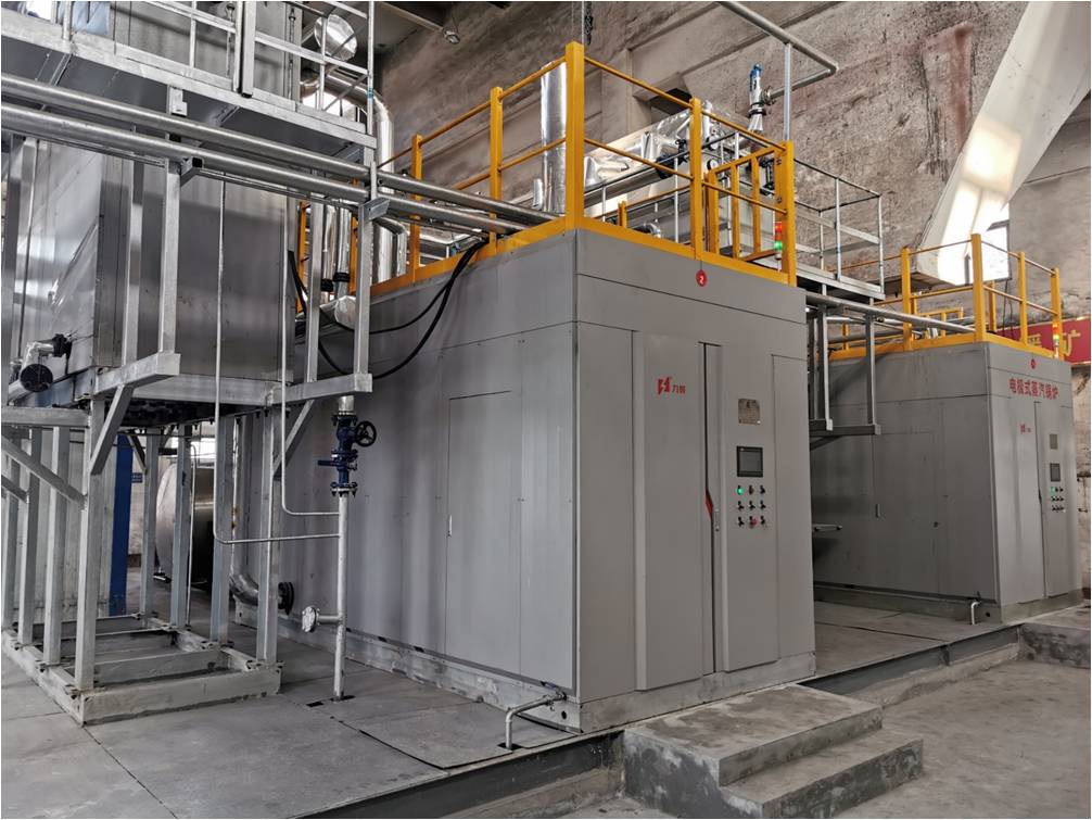 電極相變鍋爐是5001拉斯維加斯獨(dú)創(chuàng)的一種在鍋爐內(nèi)部實(shí)現(xiàn)相變換熱的電極鍋爐。它主要由電極筒、介質(zhì)筒、換熱器以及控制裝置組成。三相電極固定在電極筒內(nèi),浸在具有一定電導(dǎo)率的熱媒水中,三相電極通電后直接加熱熱媒水,在電流的作用下,熱媒水被迅速加熱汽化變成熱媒蒸汽,蒸汽上升到換熱器管外,將熱量傳遞給換熱器管內(nèi)的冷水,對(duì)外輸出蒸汽。而熱媒蒸汽凝結(jié)成水滴回到熱媒水中重新被加熱汽化,完成整個(gè)循環(huán)。在機(jī)組運(yùn)行中,熱媒水封閉在筒體內(nèi)不斷地汽化-冷凝-汽化往復(fù)循環(huán),實(shí)現(xiàn)電能向熱能的轉(zhuǎn)換。
